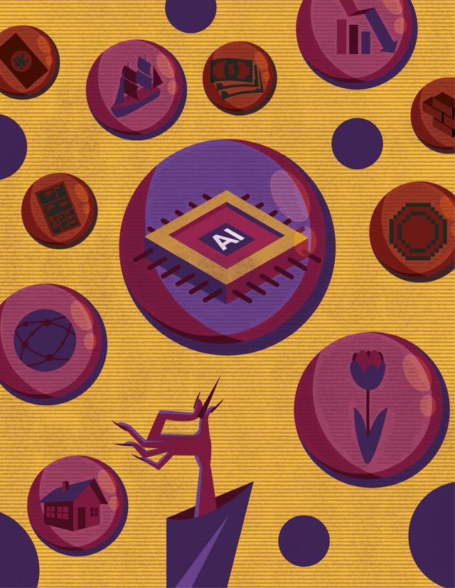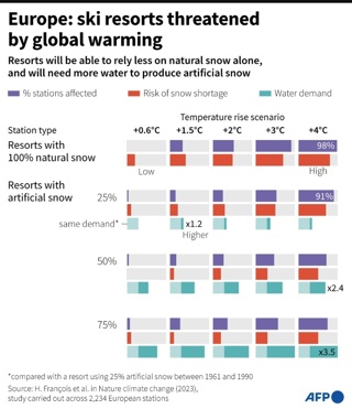 Gli abitanti delle località che ospiteranno i giochi di Milano Cortina non sono stati consultati, le spese sono cresciute e si consumeranno molta acqua ed energia per innevare le piste. Illustrazione di Bill Butcher