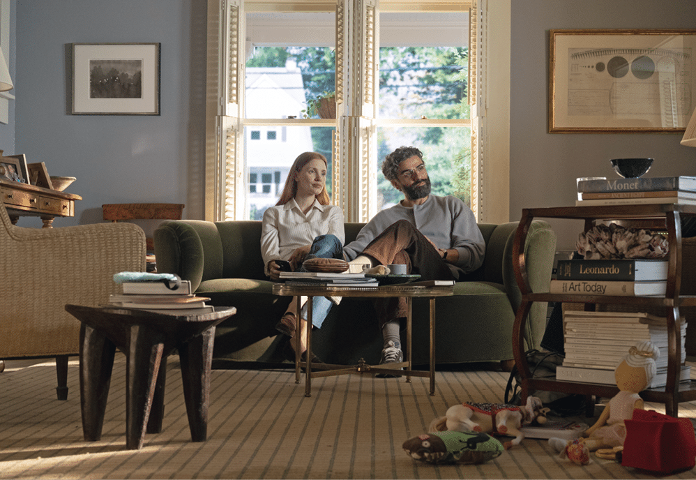 Quattro episodi su cinque del remake del classico di Ingmar Bergman del 1973 firmato da Hagai Levi (The affair) cominciano con le star, Jessica Chastain e Oscar Isaac, che arrivano sul set e si calano nei loro personaggi, creando una specie di divisione tra realtà e finzione. La trovata è anche un modo perfetto per far comprendere fino in fondo la dedizione dei due attori verso i loro personaggi, Mira e Jonathan. L’evidente chimica tra le due star, enfatizzata dall’accenno di un bacio scambiato sul tappeto rosso di Venezia, rende ancora più doloroso vedere il matrimonio della coppia che si dissolve. Salon